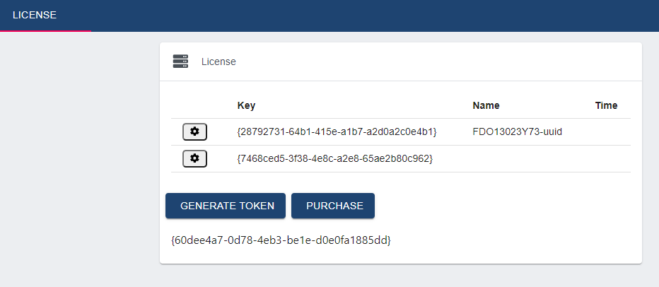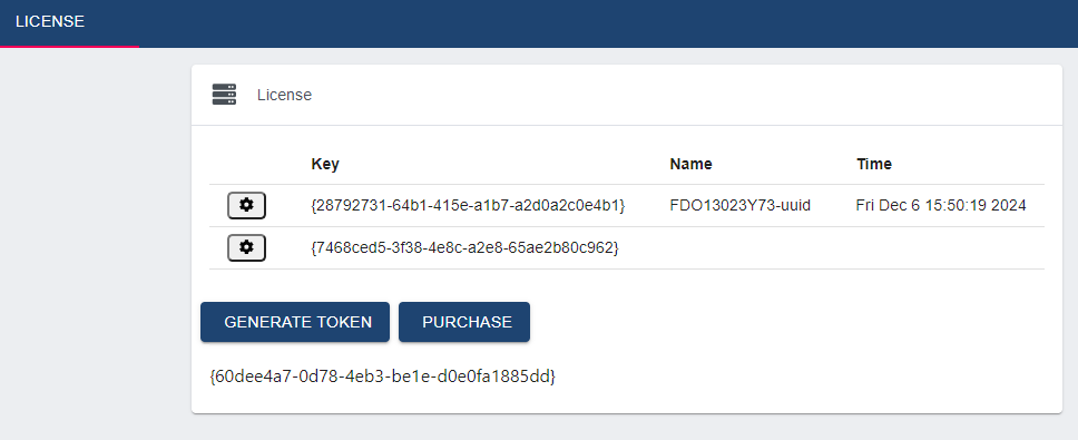 In this section you can purchase licenses and generate a token.