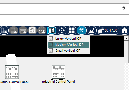 Clicking this button and selecting one of the available predefined ICP sizes from the pop-up menu will place a new Control Panel on the workspace. After this, you can enter the ICP as you would a Wiring Closet by clicking on it.